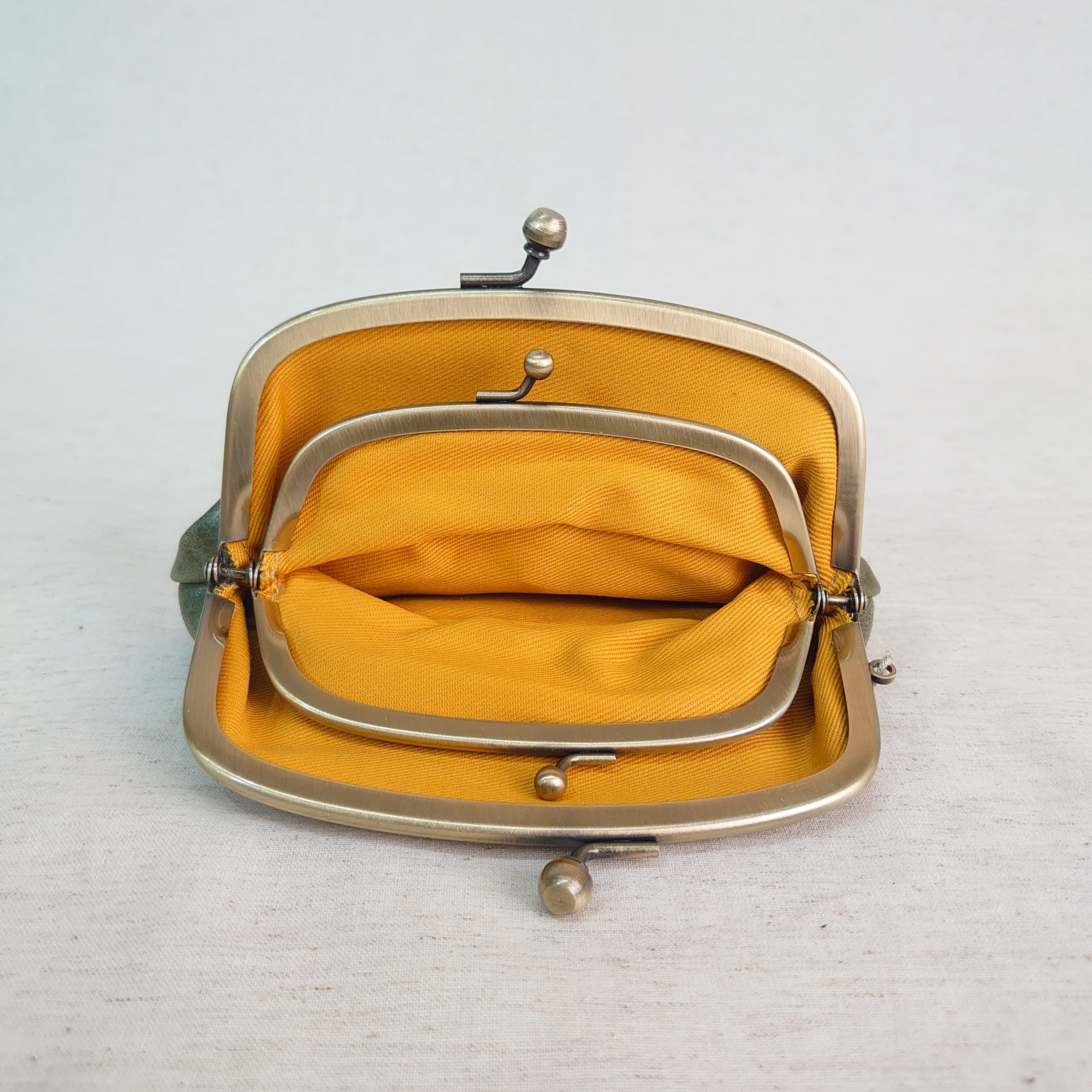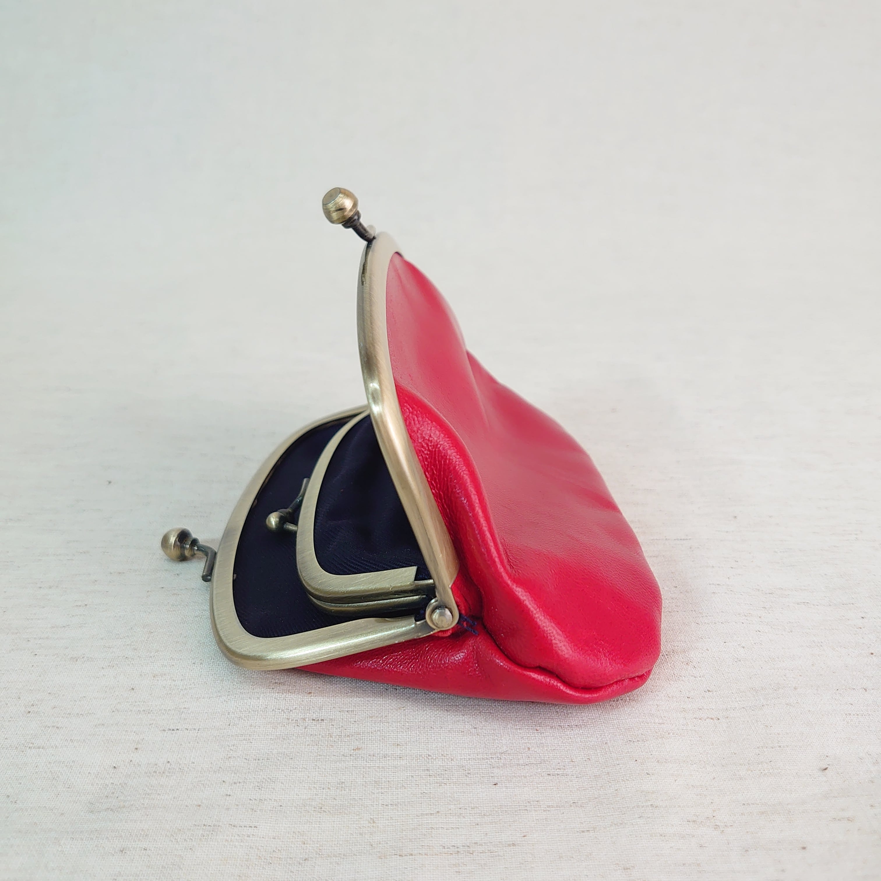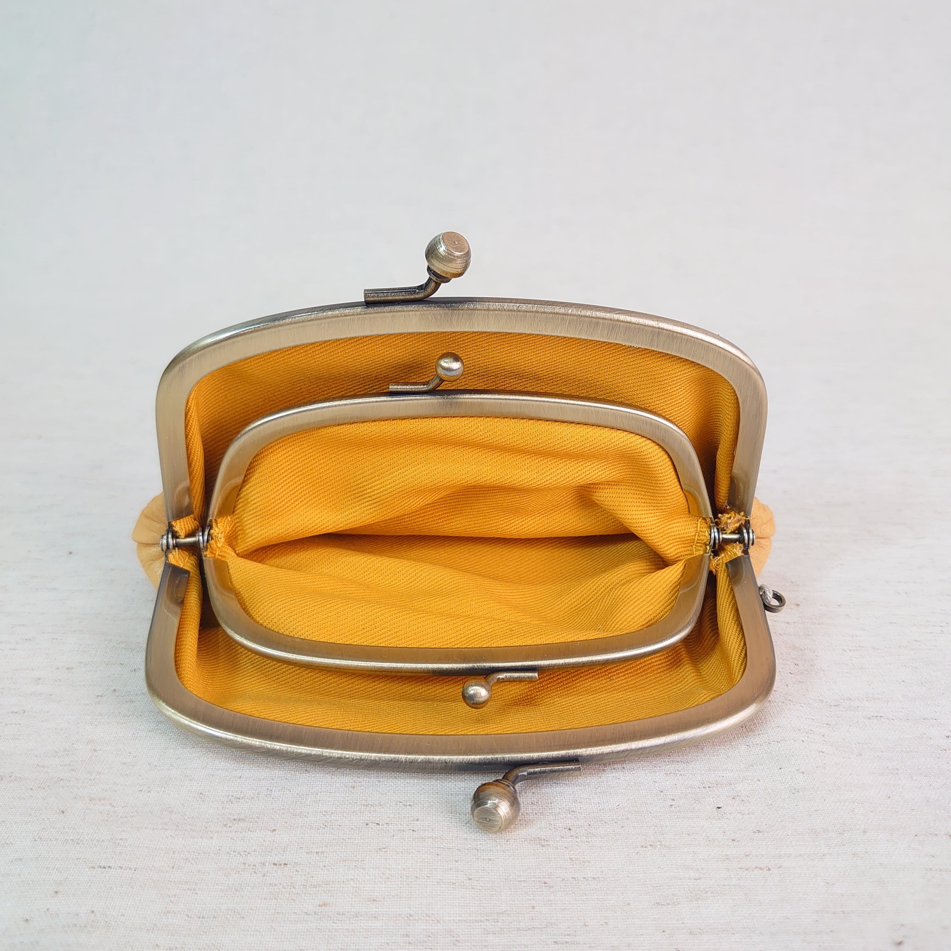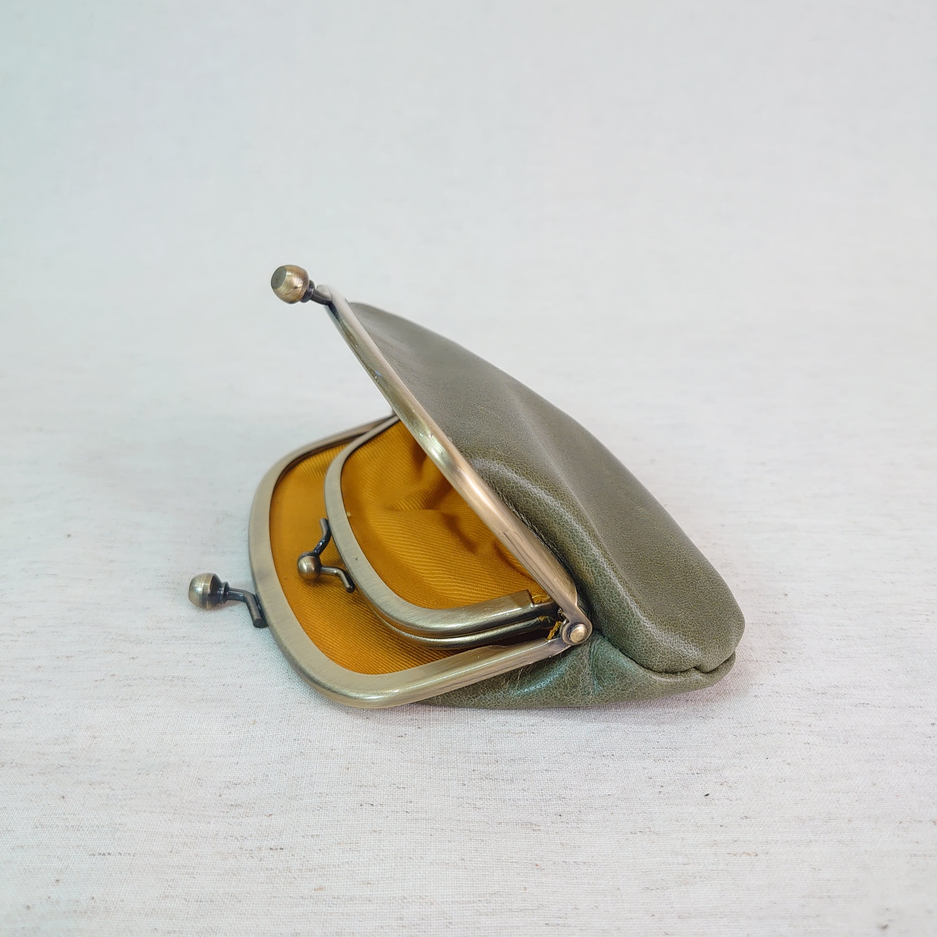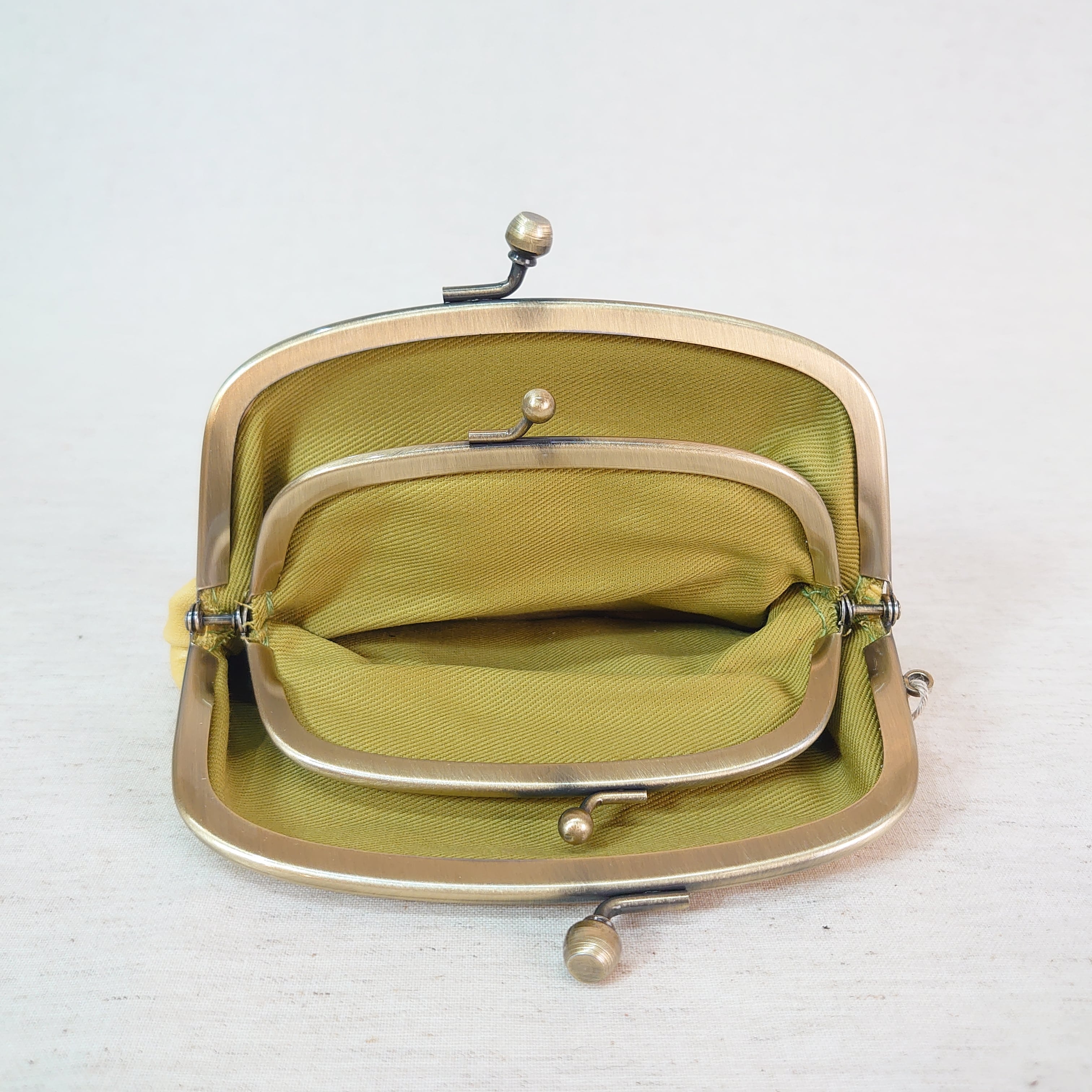 がま口の中にもう一つがま口がある親子型なので、ミニ財布として使用したり、コイン&カードケースとして使用したりアクセサリーなどを入れるポーチとしても使用でできるマルチながま口財布です。