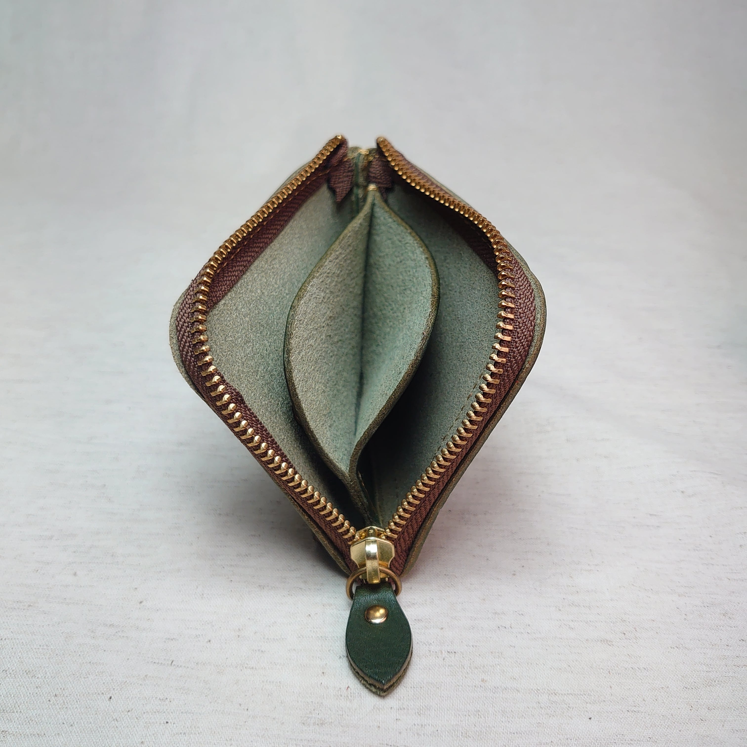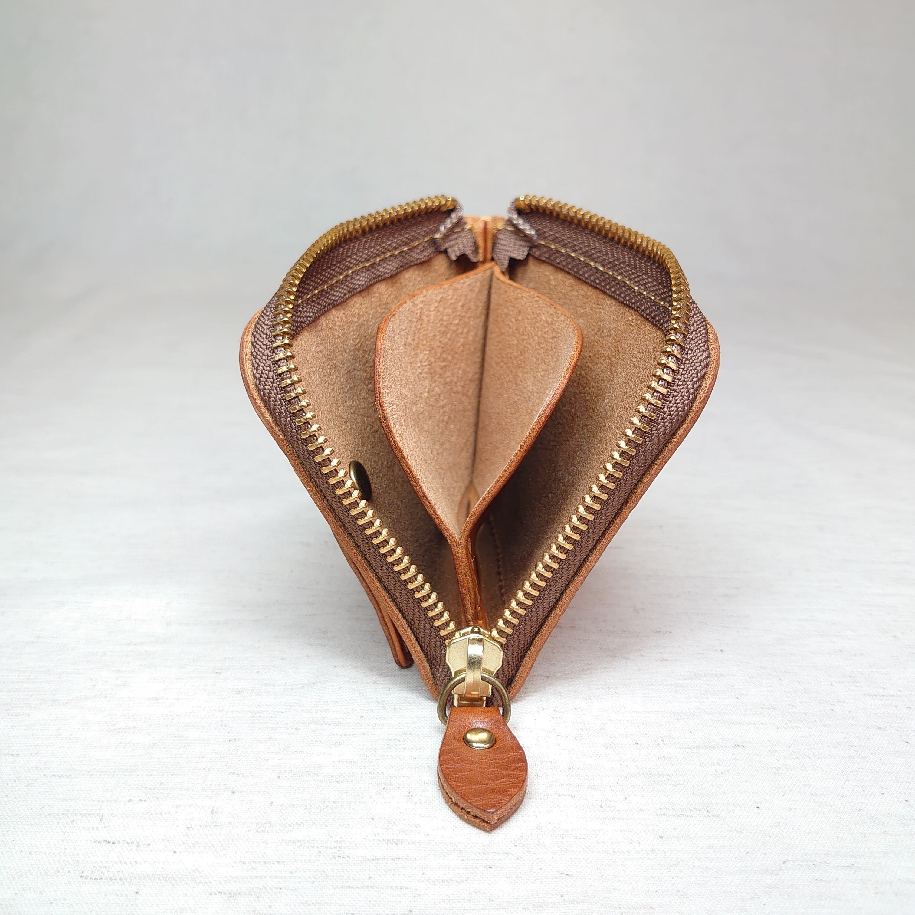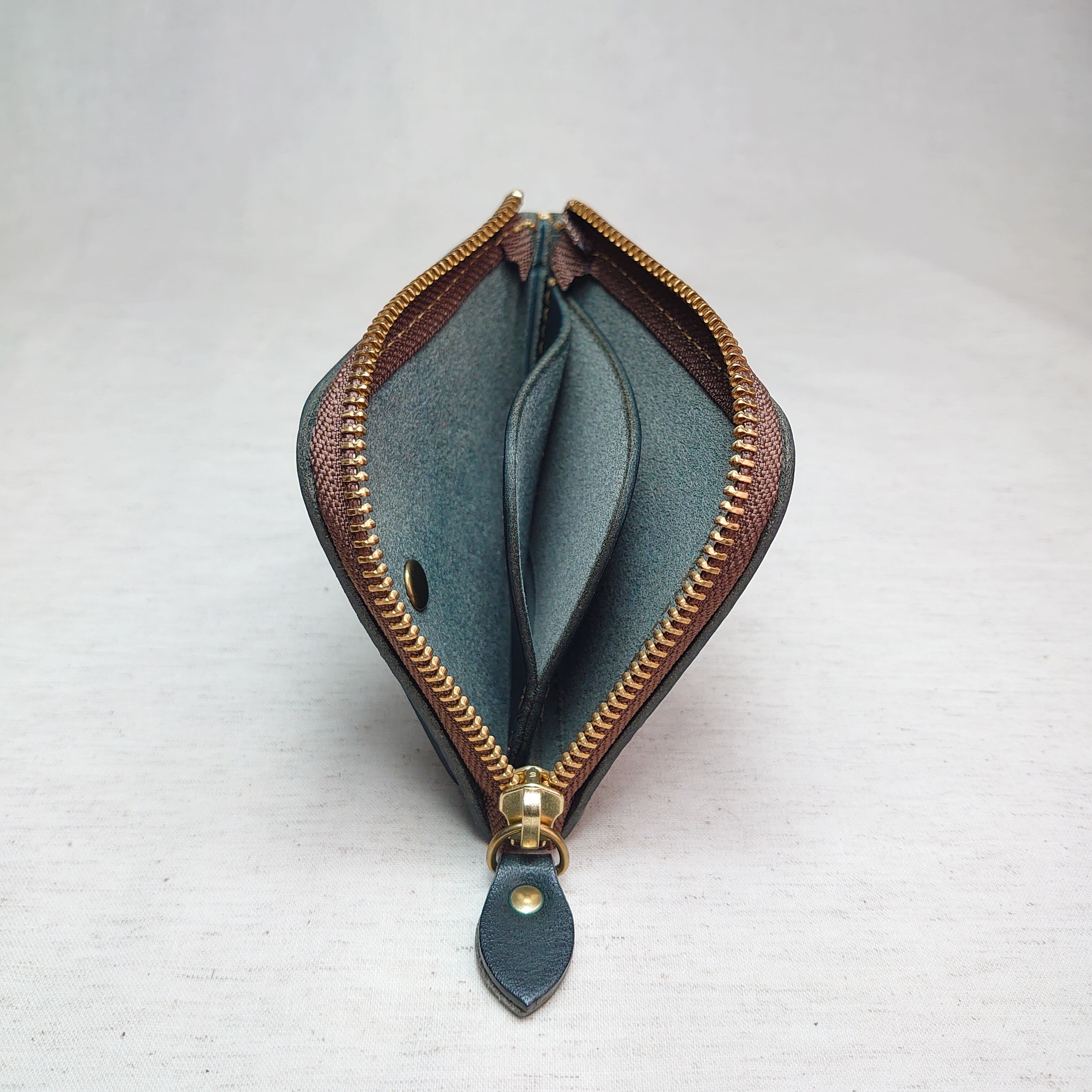 ファスナーの内側にはカード、コインが入ります。また、お札も2つ折れで入ります。