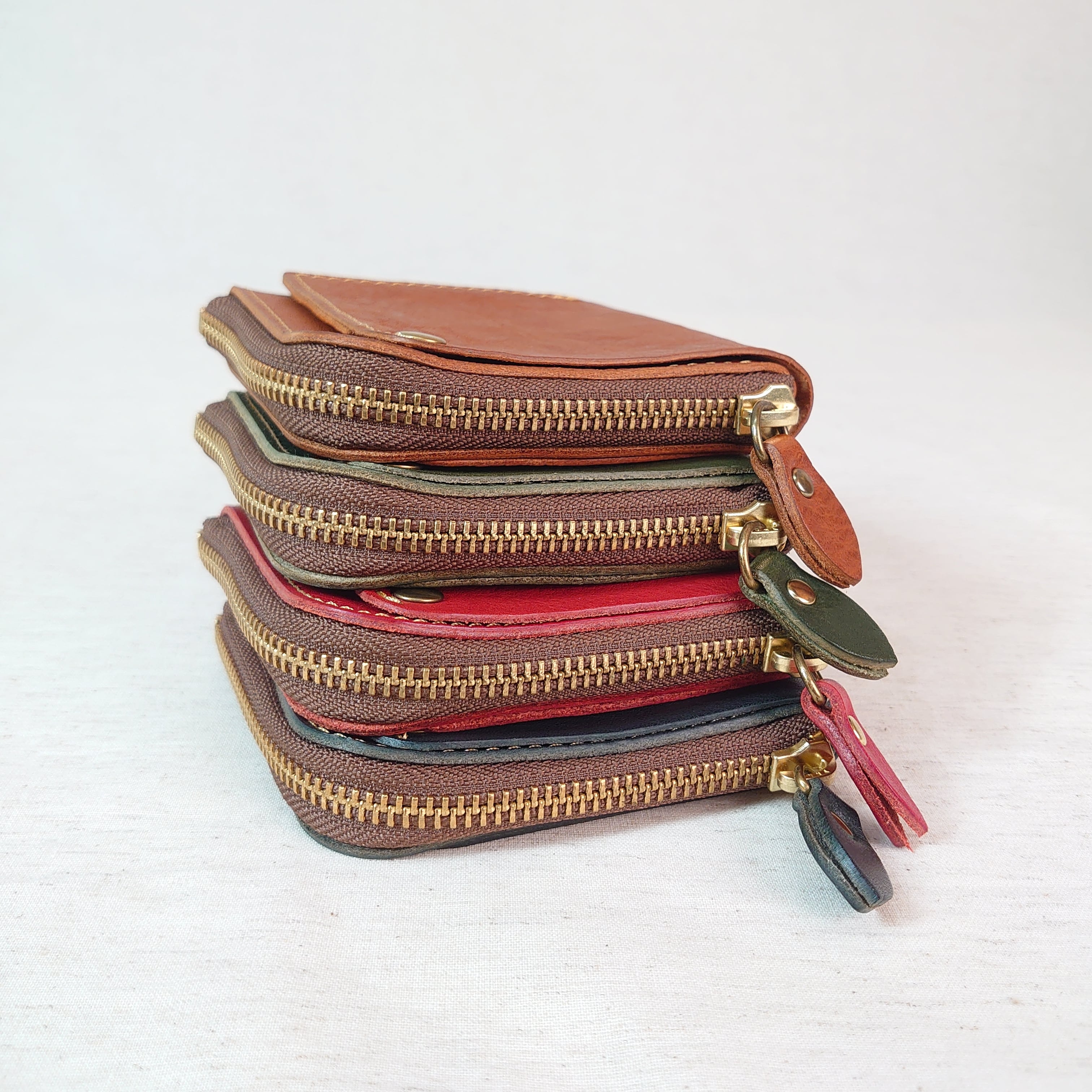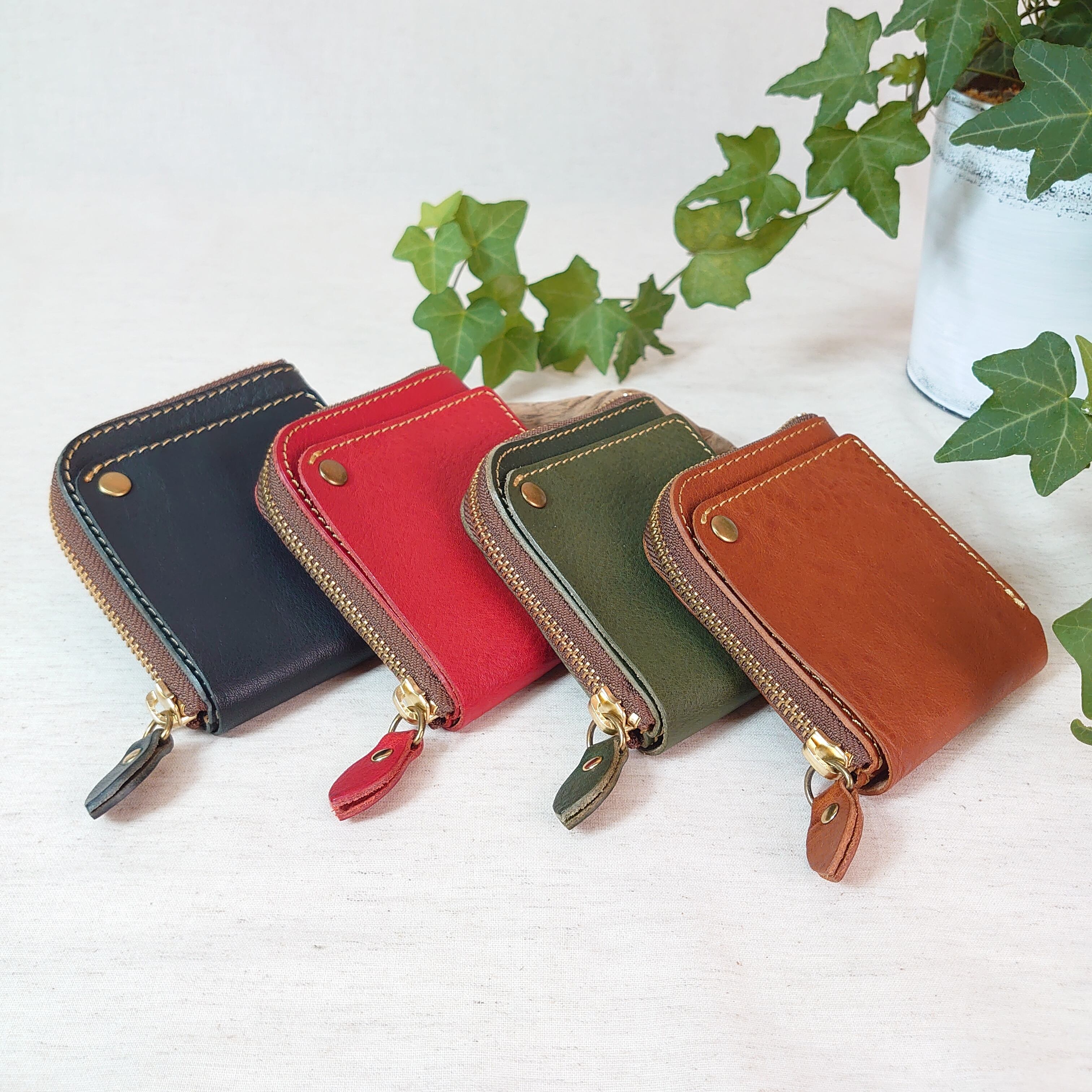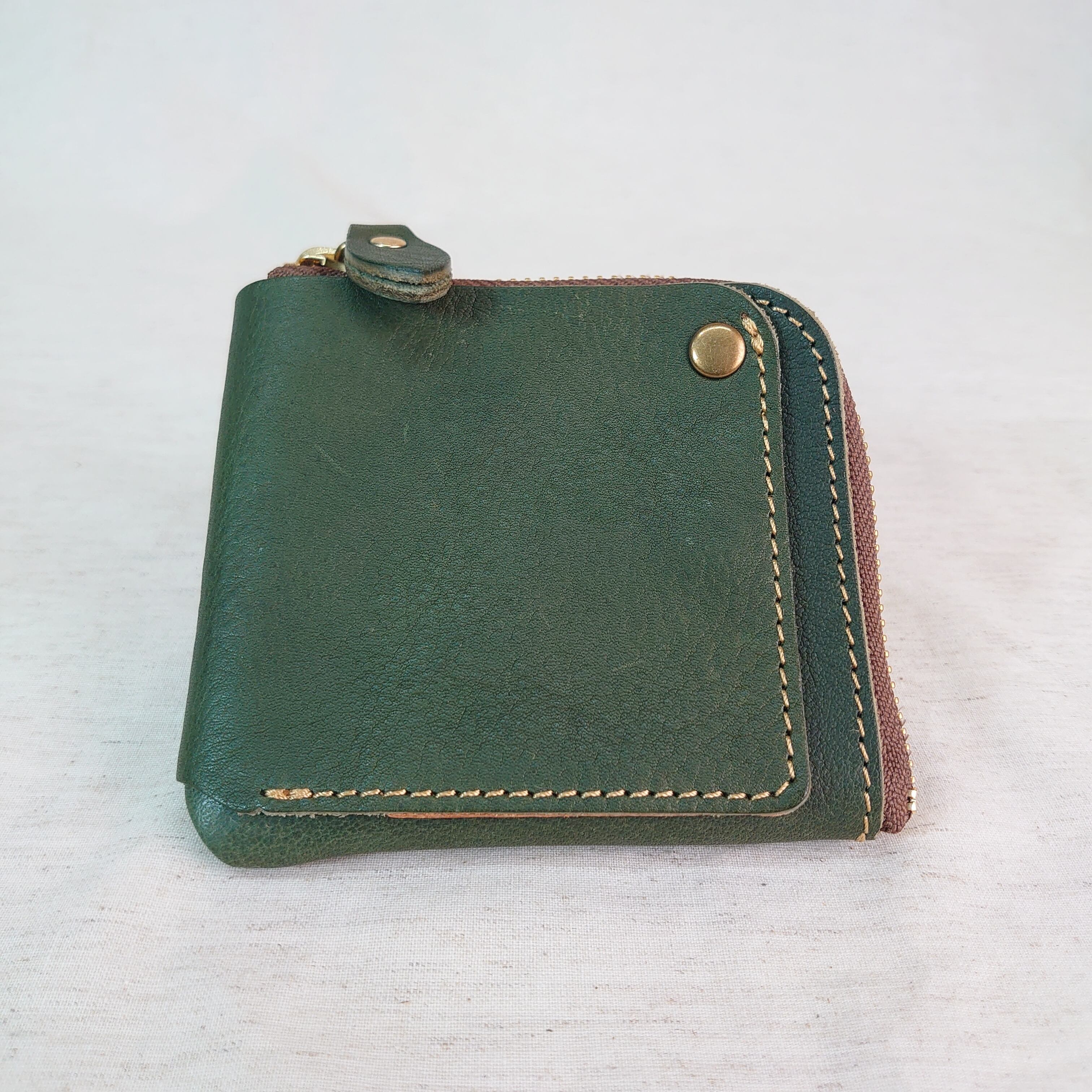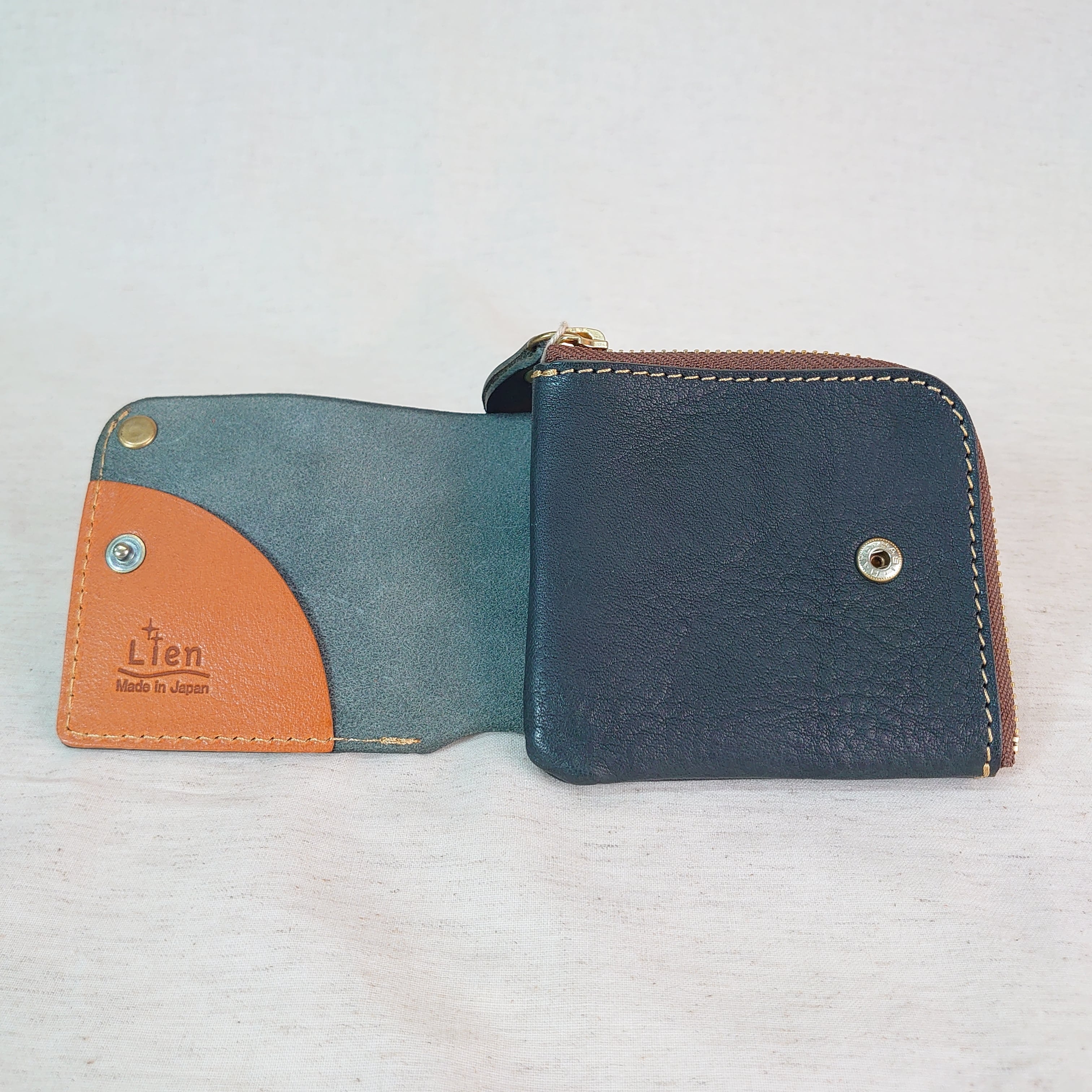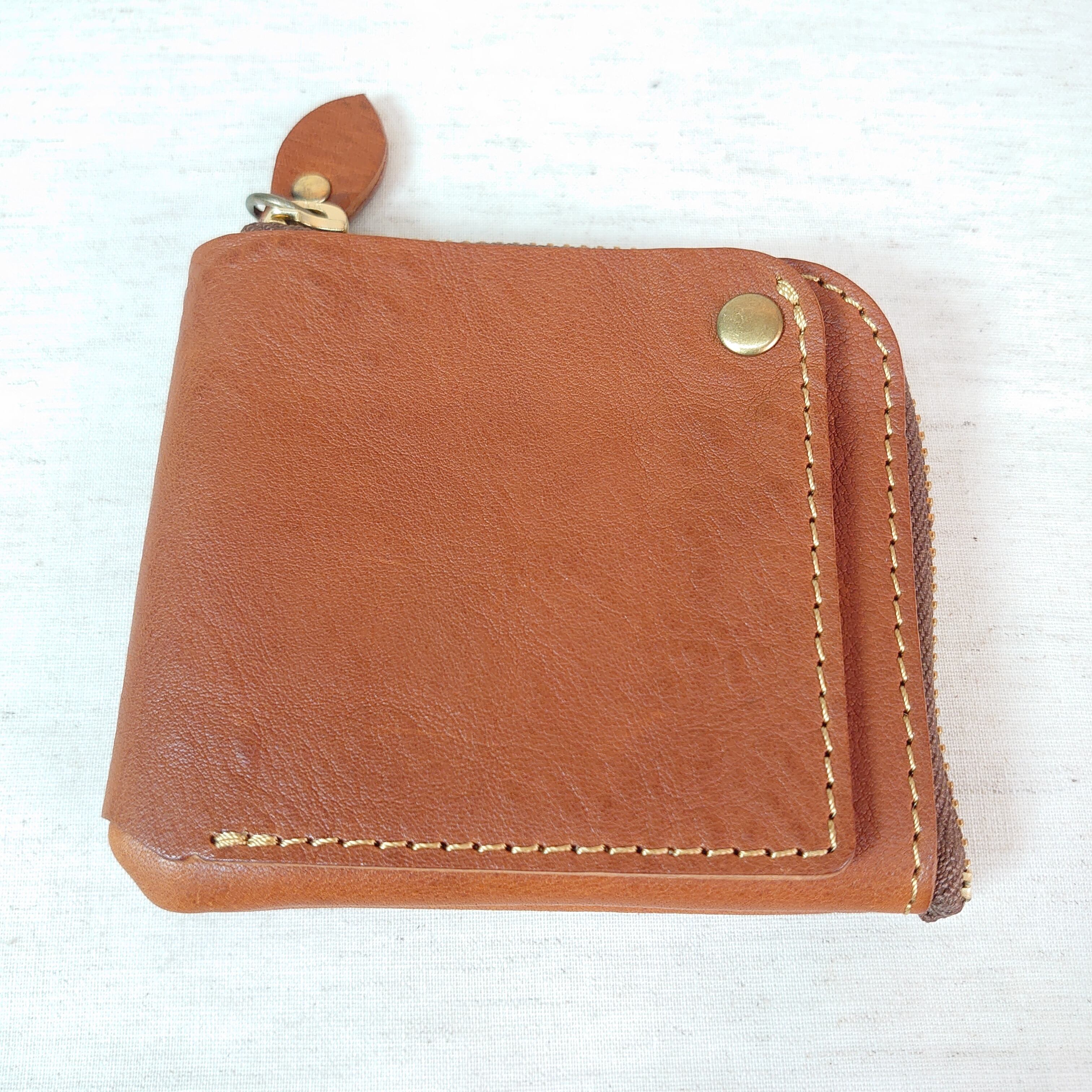 日本製 栃木レザーL型ミニウォレット 二つ折り財布 牛革