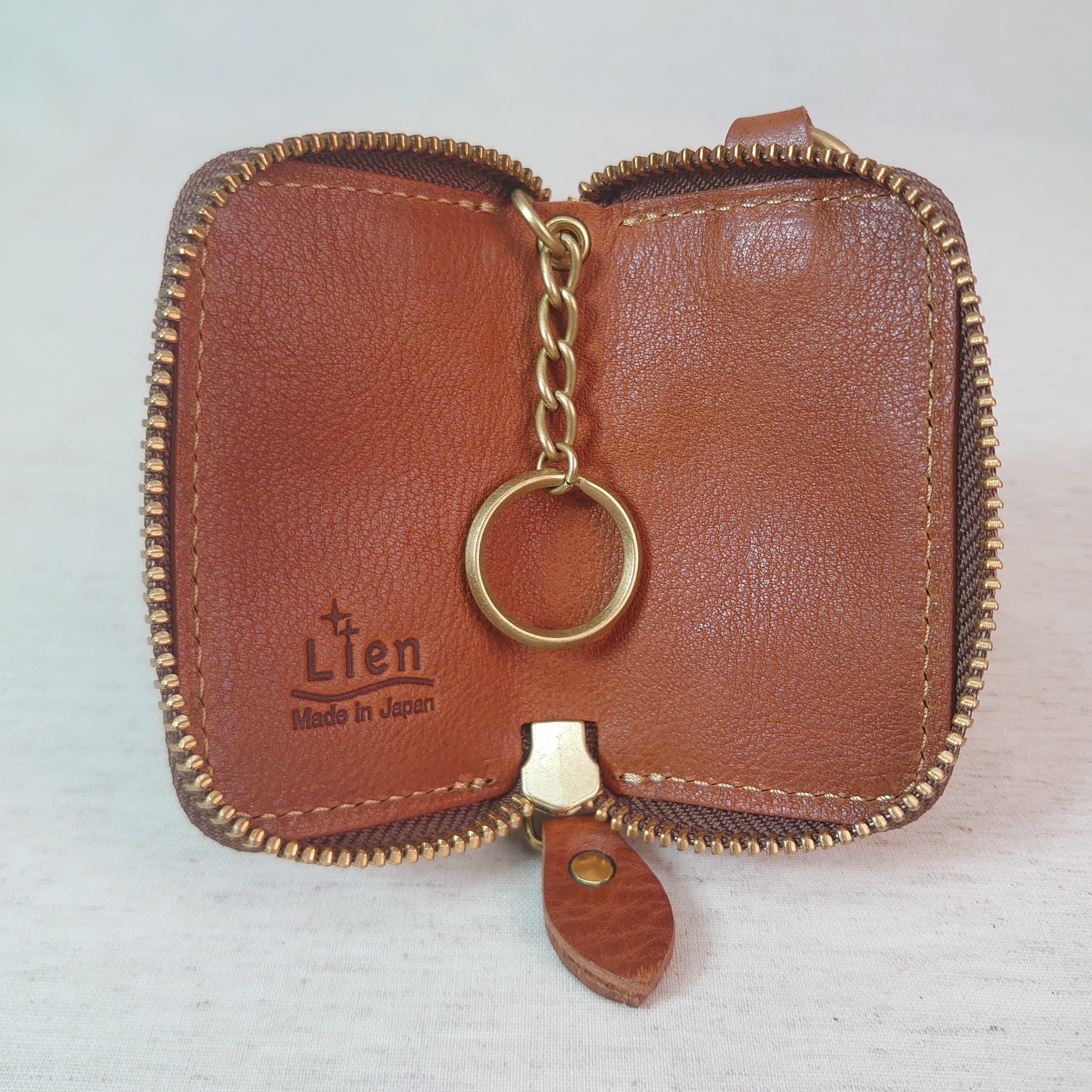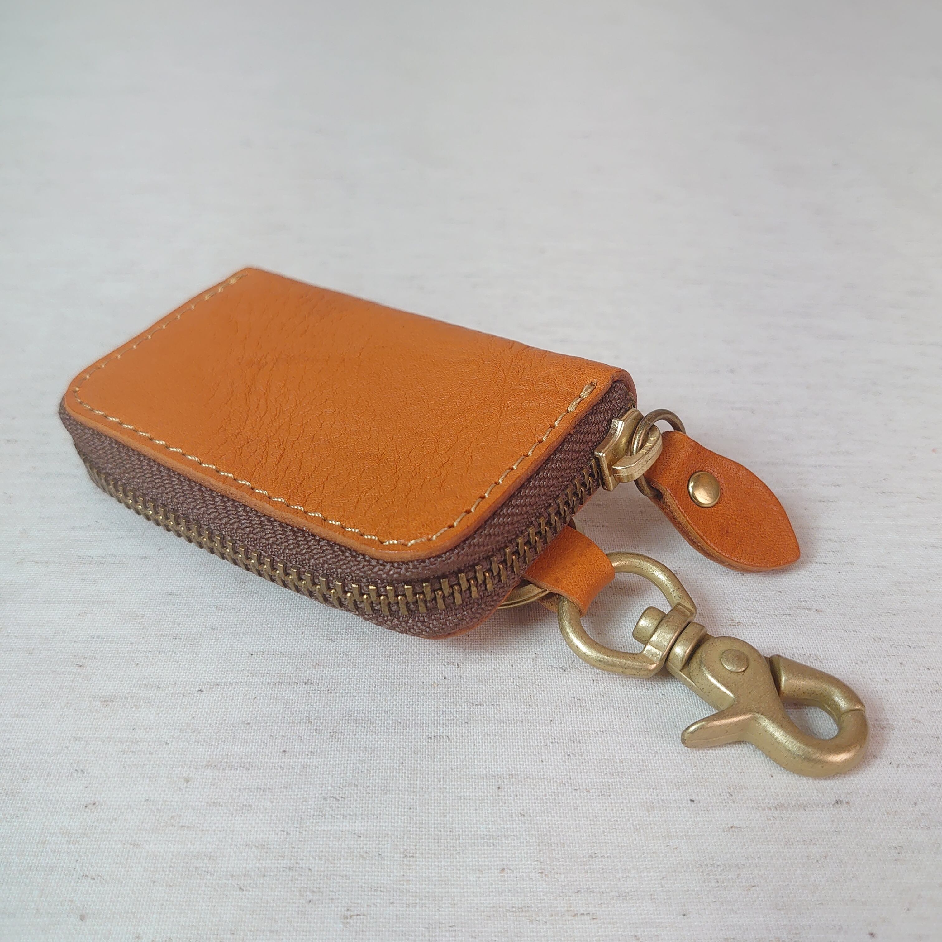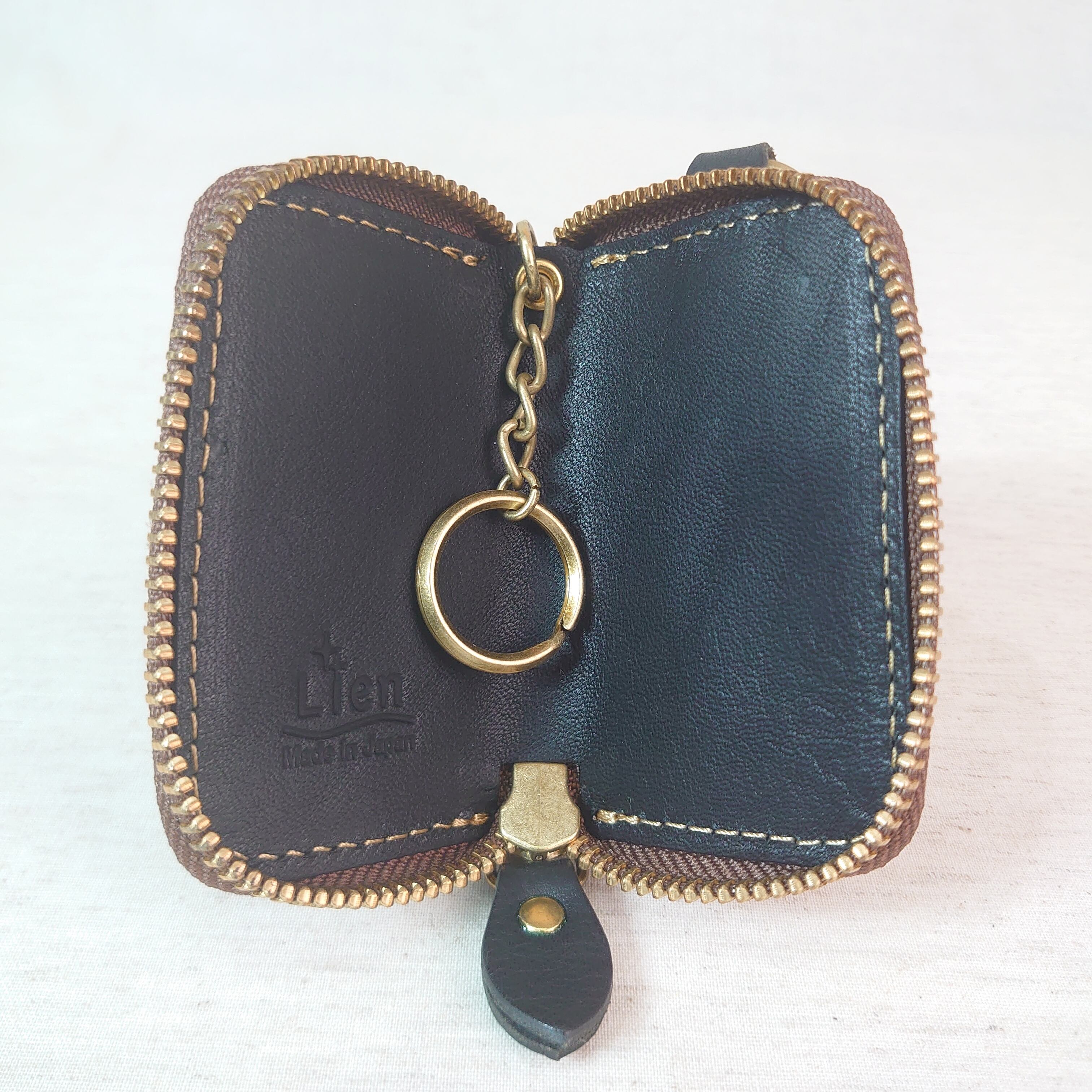 栃木レザーを贅沢に使ったスマートキーケース。内側にはキーリングが付いており、車のキーを入れるのに適しています。