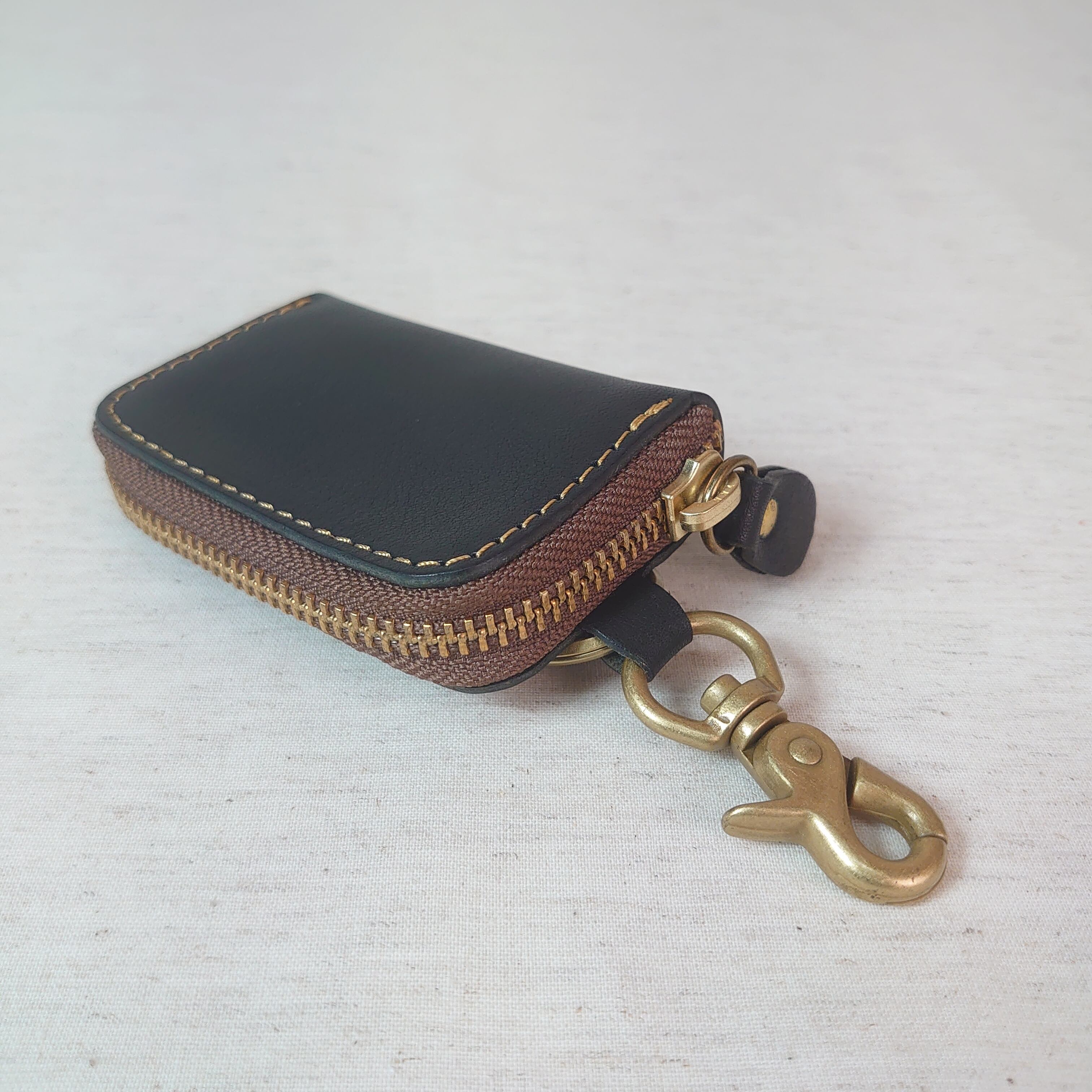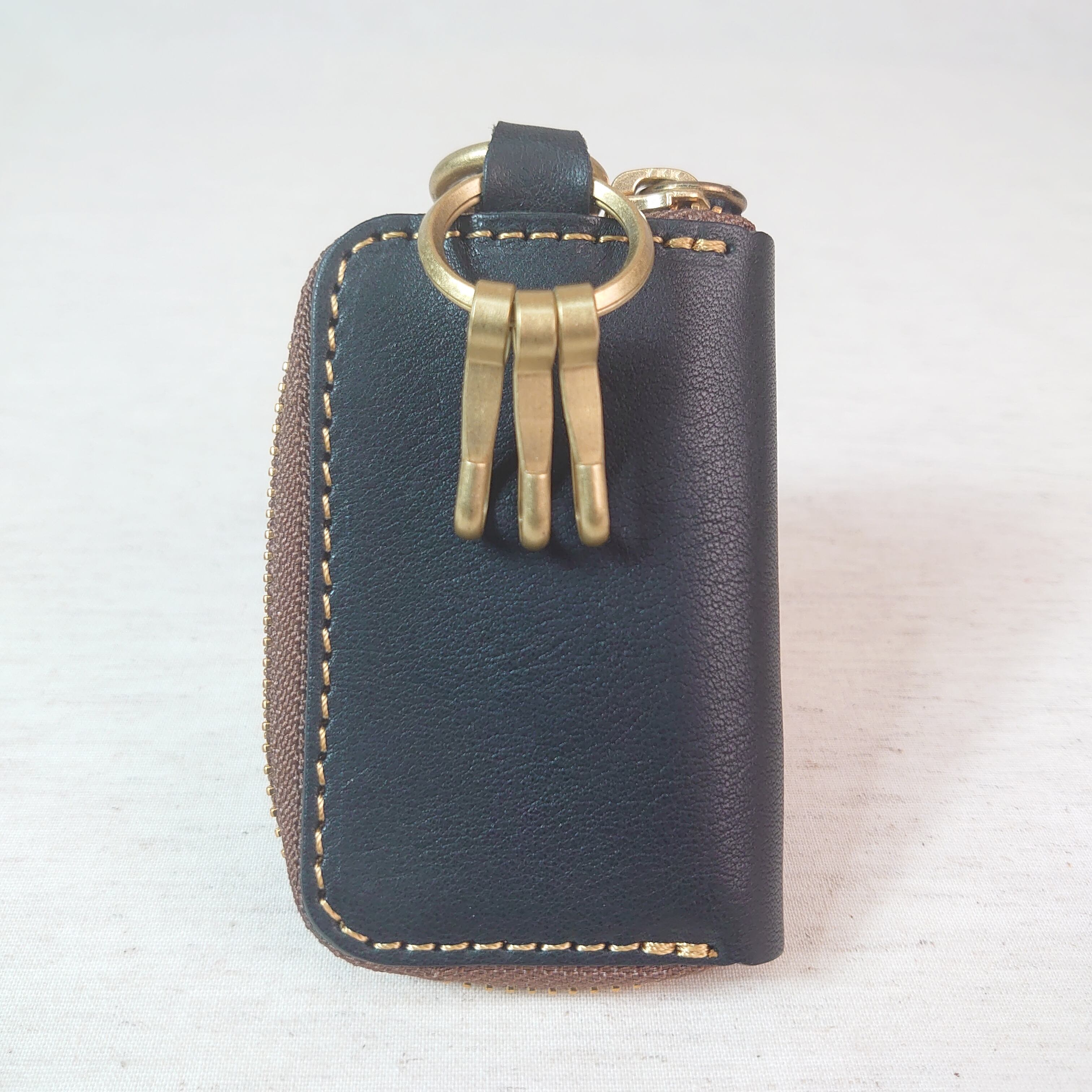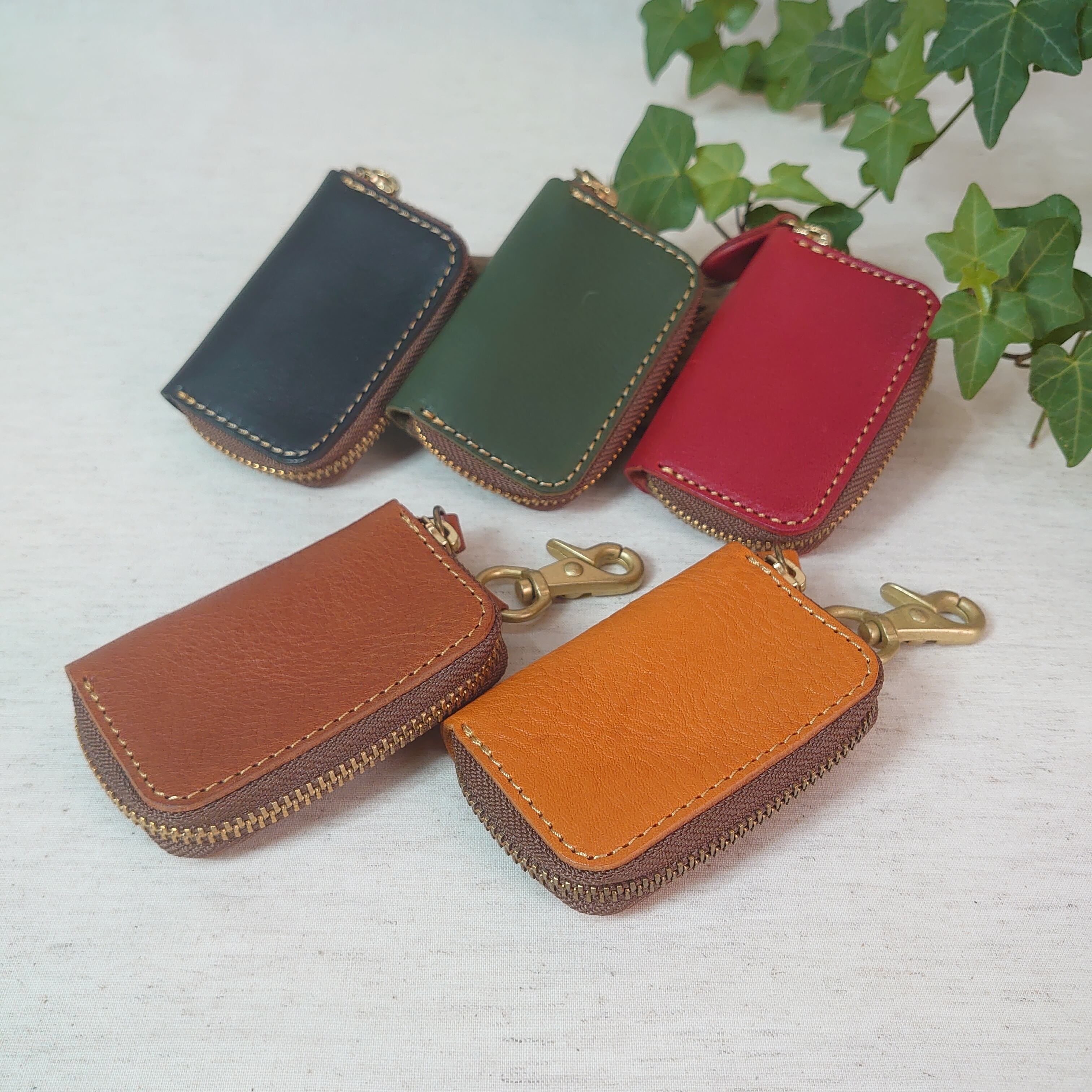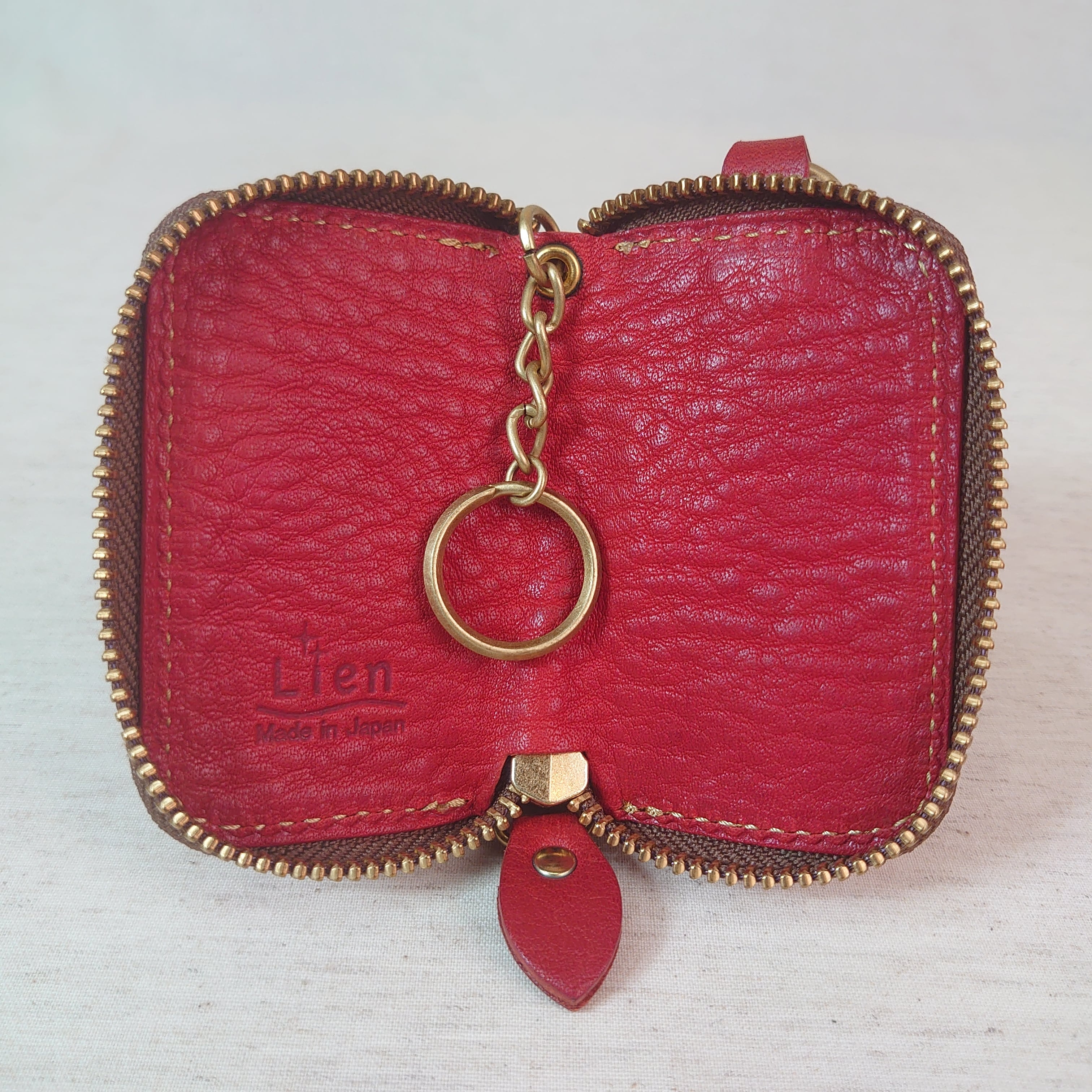 栃木レザーを贅沢に使ったスマートキーケース。内側にはキーリングが付いており、車のキーを入れるのに適しています。